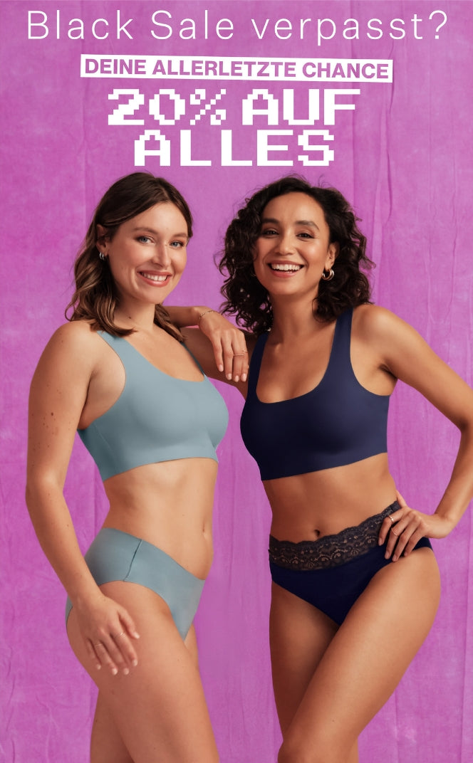 So schön und bequem wie deine Lieblingsunterwäsche, aber sie kann noch viel mehr: Unsere Everyday Collection hat im Schritt einen innovativen und exklusiv für uns entwickelten Innenstoff aus softer Baumwolle eingearbeitet, welcher Slipeinlagen ersetzen kann. Er leitet Feuchtigkeit wie Schweiß, Ausfluss oder leichte Schmierblutungen schnell vom Körper weg, sodass du dich jederzeit trocken fühlen kannst. Die äußere Schicht ist eine flüssigkeitsundurchlässige, aber atmungsaktive Membran, die dich vor dem Auslaufen schützt.