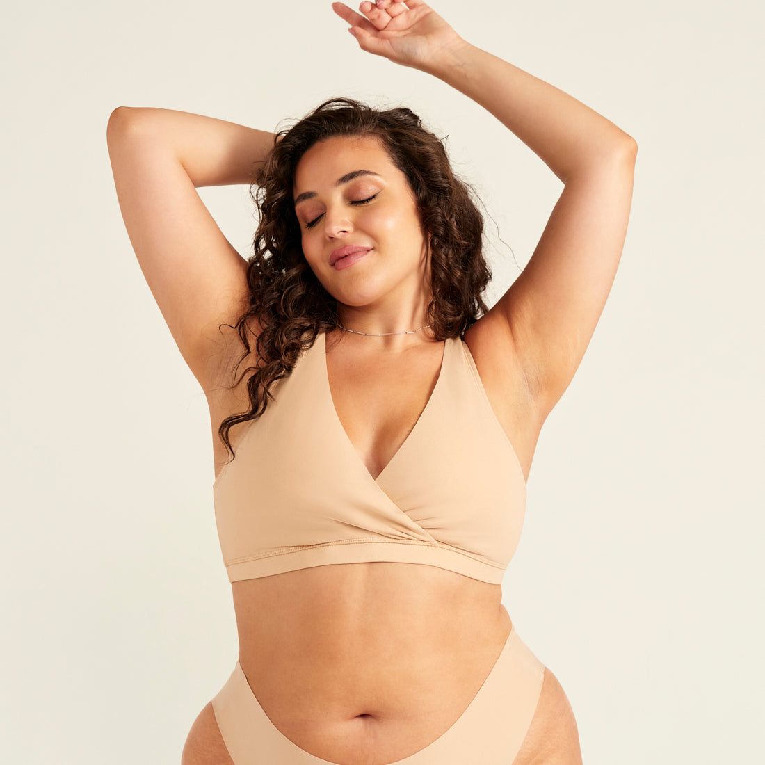 Der ooia Still BH mit praktischer Pull-Down-Funktion bis Körbchengröße C kann Stilleinlagen ersetzen.