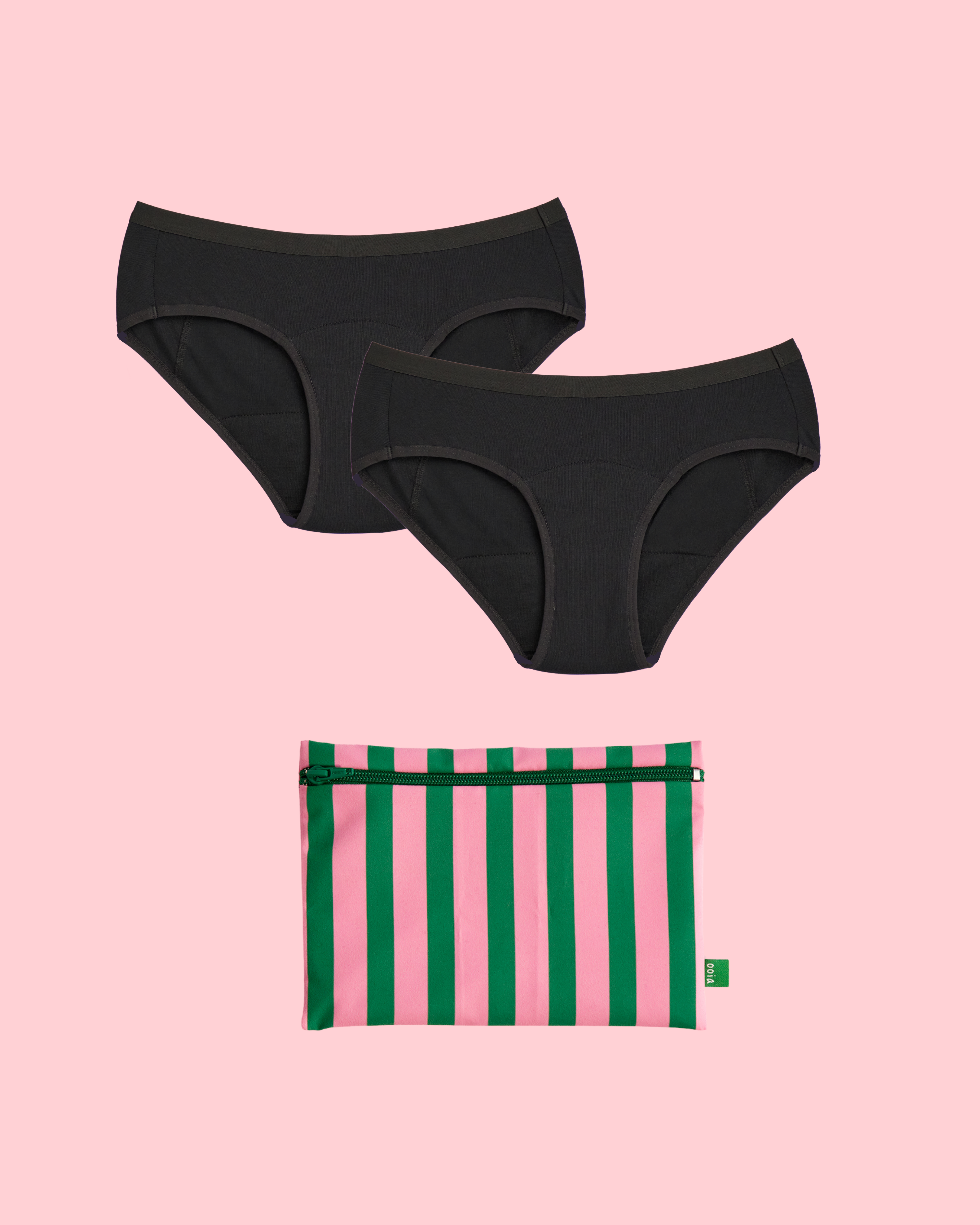 Das ooia Teens Starter Set besteht aus zwei unserer auslaufsicheren, diskreten und unkomplizierten Teens Hipsters sowie der praktischen, auslaufsicheren und stylischen ooia Wetbag 23/24 Edition. Gemeinsam sorgen sie dafür, dass Teens in der Schule oder unterwegs immer bestens vorbereitet sind.