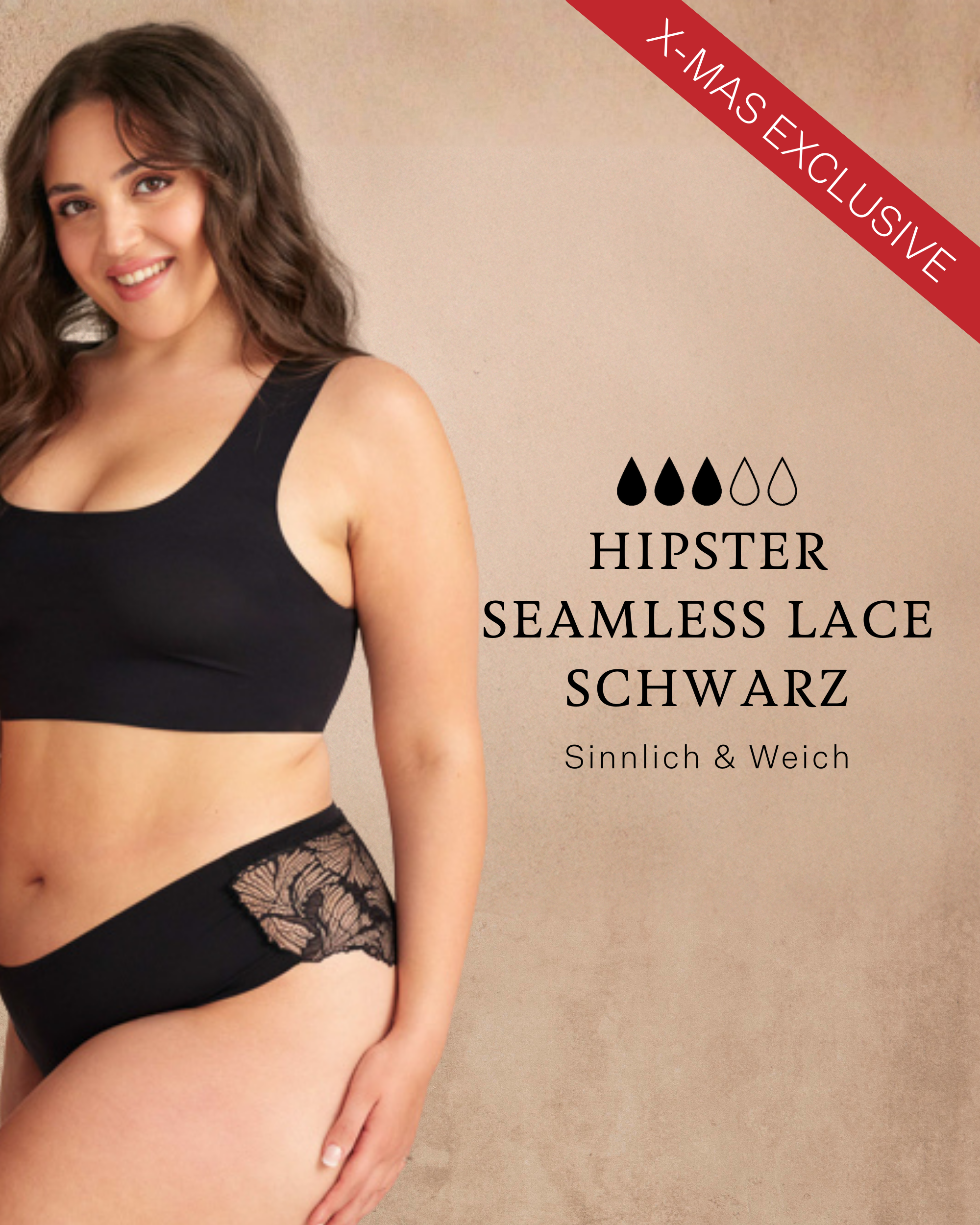 Die perfekte Mischung aus eleganter Spitze und nahtlosem Komfort bietet dir zuverlässigen Schutz während deiner Periode und ein wunderbar sicheres Gefühl in jeder Zyklusphase.