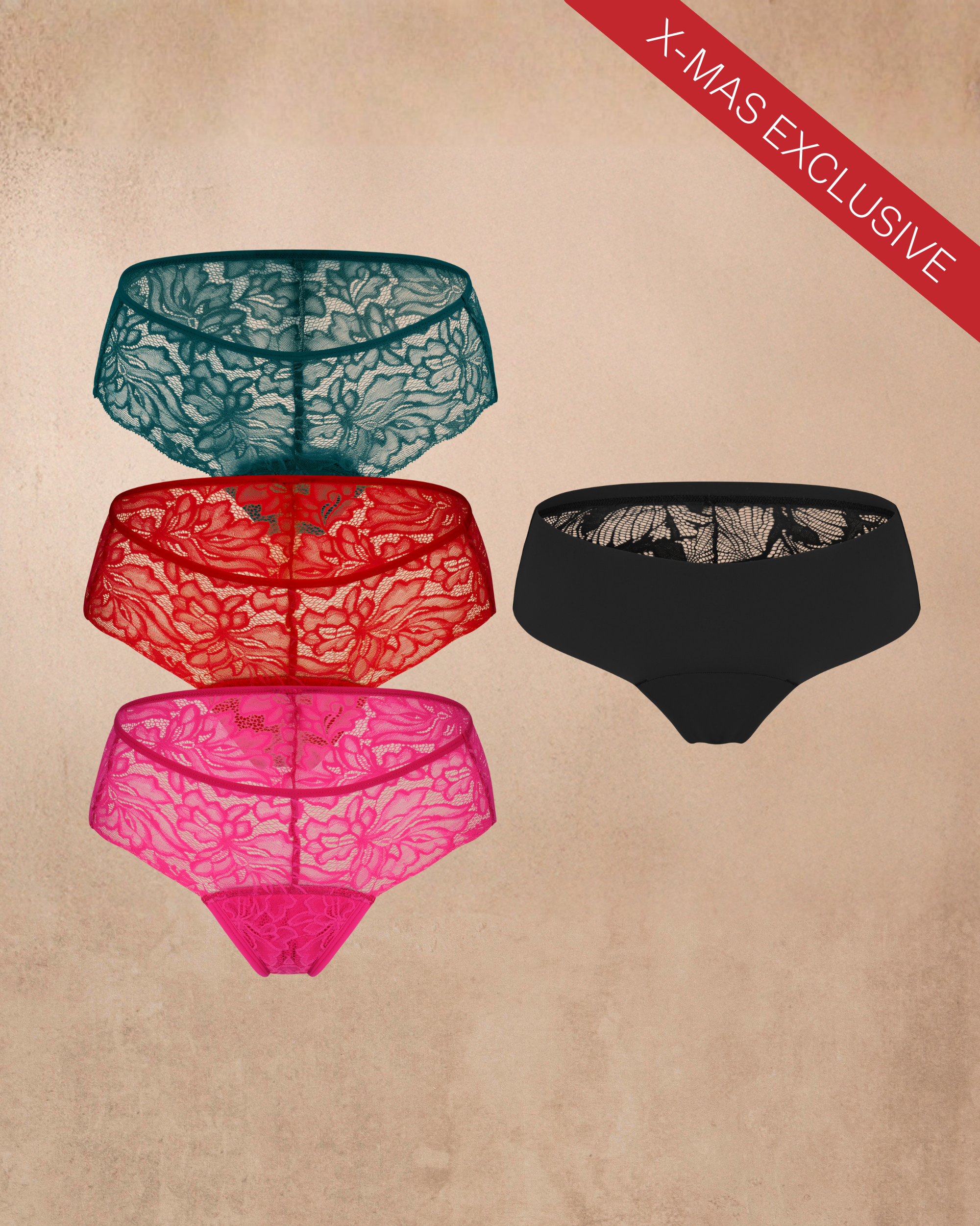 Das limitierte Christmas Set vereint ausgewählte Styles aus zarter Spitze in stimmungsvollen, weihnachtlichen Farben – exklusiv nur in der Weihnachtszeit– und macht deine Feiertage noch schöner.
